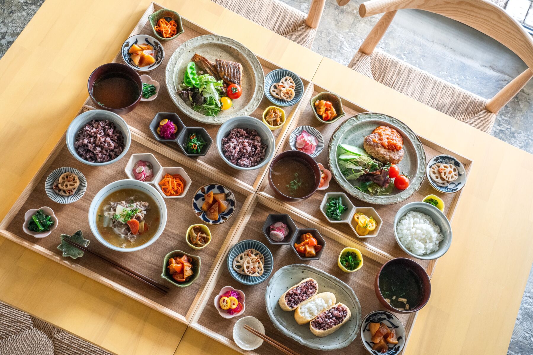 道の駅でも販売しているお野菜や鮮魚、その他岡山県産の食材をふんだんに使用したお惣菜定食や、玉野名産の雑穀を使ったお稲荷さん、自家製スイーツをお楽しみいただけます。